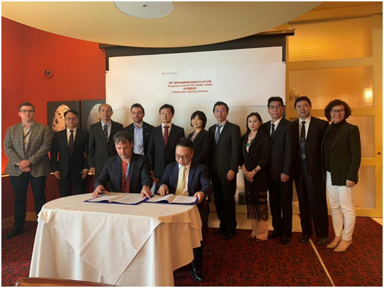 溫州醫科大學精神醫學學院黨委書記許冬武、耶利米信息科技有限公司董事長徐誼、總經理項健、溫州康寧醫院國合部主任王保鳳與艾伯塔大學精神醫學教授曹礴于艾伯塔大學
